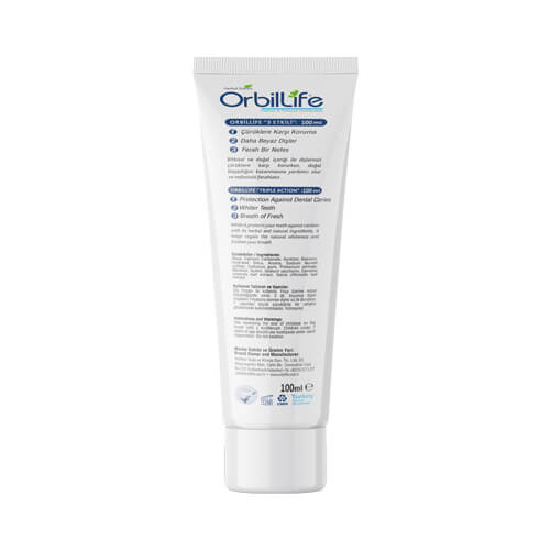 OrbilLife Üç Etkili Diş Macunu 100 ml, günlük ağız hijyeninizin ihtiyaçlarını ve bakım rutininizi tamamlar. Uzun süreli ev kullanımı için tasarlanmış bu ebat, dişleriniz için etkin bir koruma sağlar.